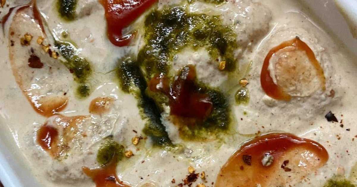 এবার টক দই ফেটে তাতে লবণ, চিনি আর জিরা গুঁড়া মিশিয়ে নিন। একটা থালায় বড়া সাজিয়ে তার উপর দই ঢেলে দিন। ওপরে ভাজা জিরা গুঁড়া, শুকনা মরিচ গুঁড়া আর ধনেপাতা ছড়িয়ে দিন।