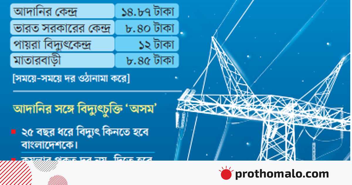 পিডিবি সূত্র বলছে, গণ-অভ্যুত্থানের পর আদানির সঙ্গে আগের সরকারের করা ‘অসম চুক্তি’ বাতিলের দাবি জোরালো হয়। কিন্তু চাইলেই চুক্তি বাতিল করা যায় না। তাই চুক্তির অসংগতি দূর করে সংশোধনের আলোচনা করা হচ্ছে। এটি করা গেলে আদানির কাছ থেকে কেনা বিদ্যুতের দাম কমে আসবে।