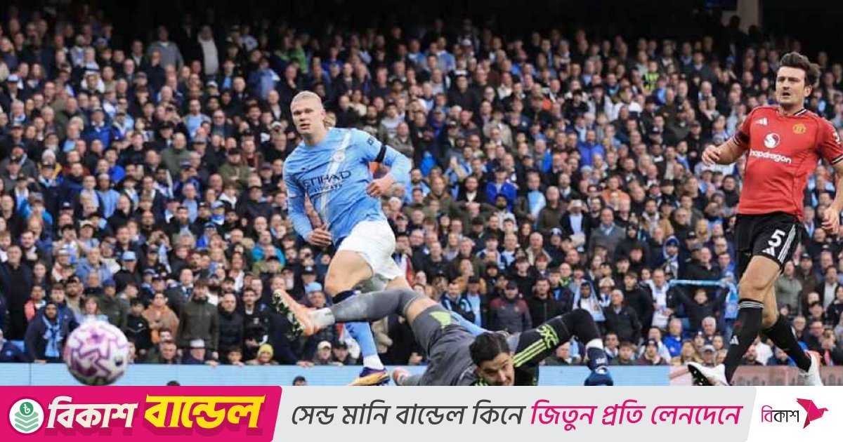 মৌসুমে ফিল ফোডেন প্রথমবার শুরুর একাদশে ফিরেছিলেন। নেমেই ১৮ মিনিটে জেরেমি ডকুর ক্রস থেকে হেড করে ম্যানচেস্টার সিটিকে এগিয়ে দেন তিনি। কয়েকদিন আগে দেশের হয়ে মাঠ কাঁপানো হাল্যান্ড এদিনও ছিলেন বিধ্বংসী ভূমিকায়। ৫৩ মিনিটে ব্যবধান বাড়ান সিটির। পুরোটা সময় ইউনাইটেডের রক্ষণে বুলডোজার চালানো ২৫ বছর বয়সী ৬৮ মিনিটে পান জোড়া গোল। ৪ ম্যাচে দুই জয়ে আটে উঠেছে সিটি। এক জয়ে ১৪তম স্থানে রয়েছে ম্যানইউ।