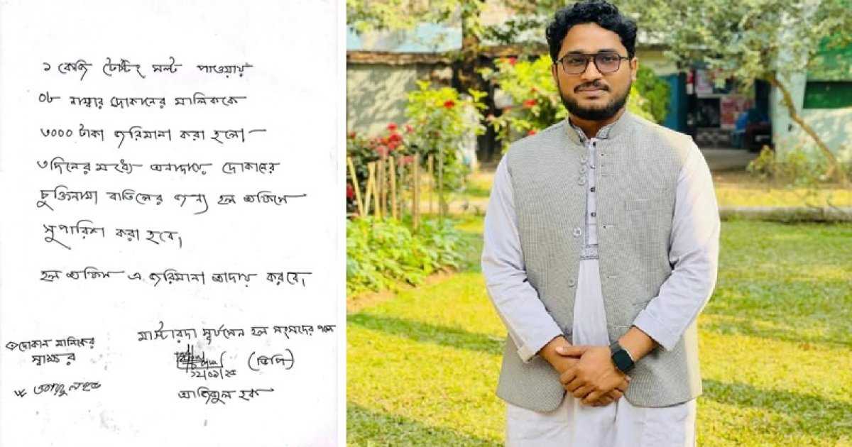 ঘটনাটি ঘটে গত ১২ সেপ্টেম্বর। তবে জরিমানার একটি হাতে লেখা নোটিশ প্রকাশ্যে আসে সোমবার (১৫ সেপ্টেম্বর)।