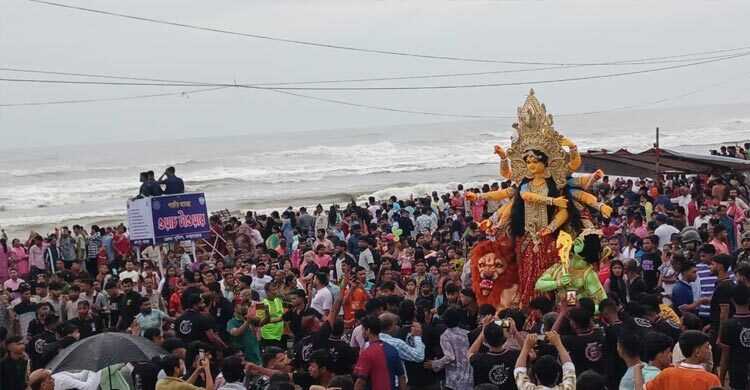 বৃষ্টি ও চোখের জল একাকার করে দেবী দুর্গাকে কক্সবাজার সৈকতে বিসর্জন দিলেন ভক্তরা। উৎসবমুখর পরিবেশে দেবীকে বিদায় জানাতে সম্প্রীতির মিলন বসে বেলাভূমিতে। সনাতনীদের বাৎসরিক এ ধর্মীয় উৎসবের সমাপ্তিতে প্রতিমা বিসর্জন পরিণত হয়েছিল একটি সার্বজনীন উৎসবে।