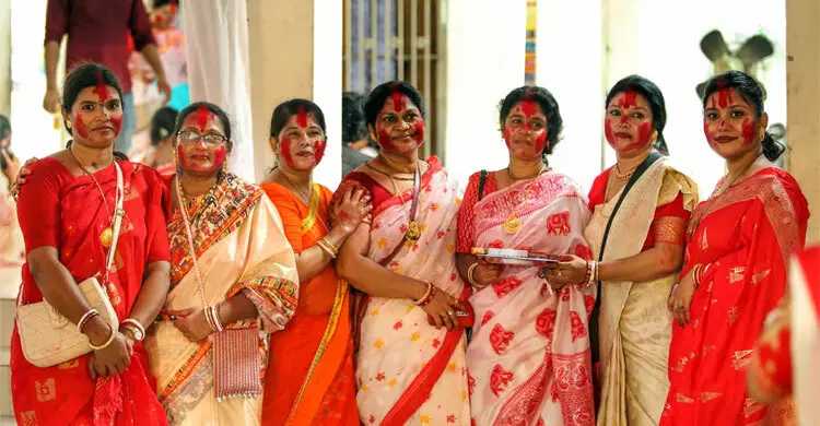 সনাতন ধর্মাবলম্বী লোকজনের সঙ্গে কথা বলে জানা গেছে, সিঁদুর খেলায় মূলত বিবাহিত নারীরা অংশ নেন। এই আয়োজনে প্রথমে দেবীর চরণে সিঁদুর অর্পণ করেন এবং পরে সেই সিঁদুর কৌটায় তুলে নিয়ে সারা বছর ব্যবহার করে থাকেন নারীরা। এরপর একে অপরের কপাল ও চিবুকে দেবীর চরণস্পর্শ করা সিঁদুর লাগিয়ে মঙ্গল কামনা করেন।