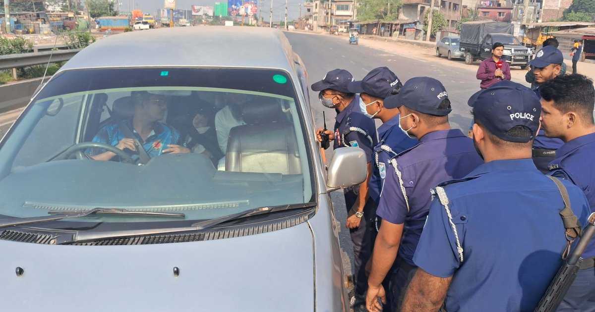 কার্যক্রম নিষিদ্ধ ঘোষিত আওয়ামী লীগ ঘোষিত লকডাউন কর্মসূচিকে কেন্দ্র করে ঢাকার প্রবেশপথ আমিনবাজারে চেকপোস্ট বসিয়ে বিভিন্ন যানবাহনে তল্লাশি চালাচ্ছে পুলিশ।