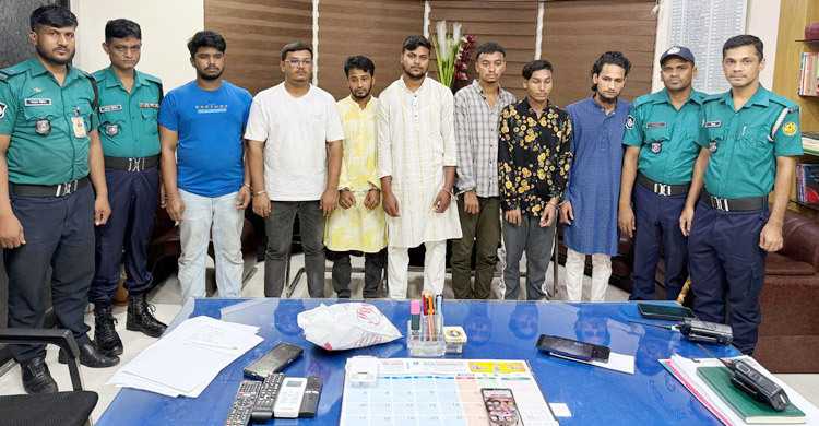 গ্রেফতাররা হলেন- মো. মাইন উদ্দীন (৩৬), বিল্লাল হোসেন (৩৮), মো. রাব্বি (২১), মো. সোহেল হাসান রাফি (২১), আরিফ (২৩), নাদিম (১৯), মো. শুক্কুর হাওলাদার (২৫), শিহাব মুন্সি (২৫), মো. জুয়েল (৩০), সাদ্দাম মোল্লা (২৭), মো. রানা (১৯) এবং মো. নাজমুল (১৯)।