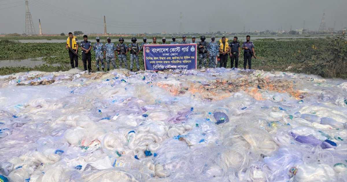 শুক্রবার রাত ১১টা থেকে শনিবার সকাল ৮টা পর্যন্ত টানা নয় ঘণ্টার এই অভিযানে ছয়টি কারখানা এবং ছয়টি গুদাম ঘিরে ফেলে বিপুল পরিমাণ নিষিদ্ধ কারেন্ট জাল জব্দ করা হয়।