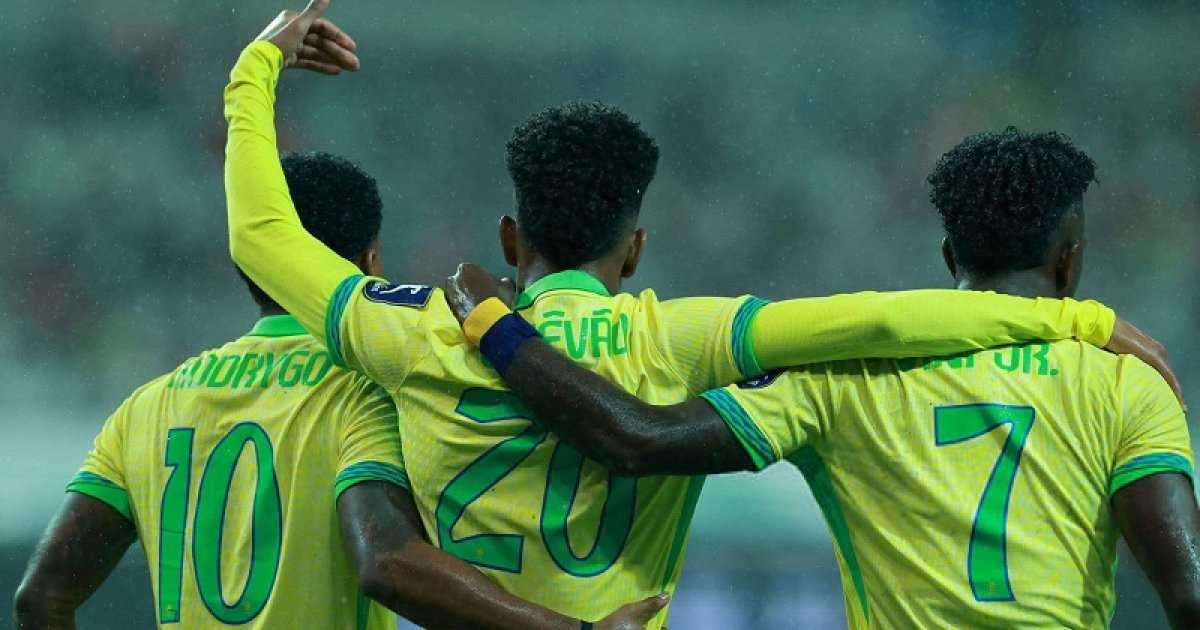 ১৩ মিনিটে দারুণ গোলে এগিয়ে যায় ব্রাজিল। ব্রুনো গিমারাইসের পাসে ছয় গজ বক্সের প্রান্তে ডান পায়ের শটে বল জালে পাঠান এস্তেভোঁ।
