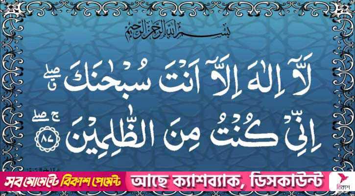 দোয়া ইউনুস- লাইলাহা ইল্লা আন্তা সুব্হানাকা ইন্তি কুন্তু মিনাজজলিমীন এর মাহাত্ম্য ও গুরুত্ব অপরিসীম। আল্লাহর নবী হজরত ইউনুস (আ.) এই দোয়া পাঠ করেই আল্লাহর রহমতে মাছের পেট থেকে মুক্তি পেয়েছিলেন।