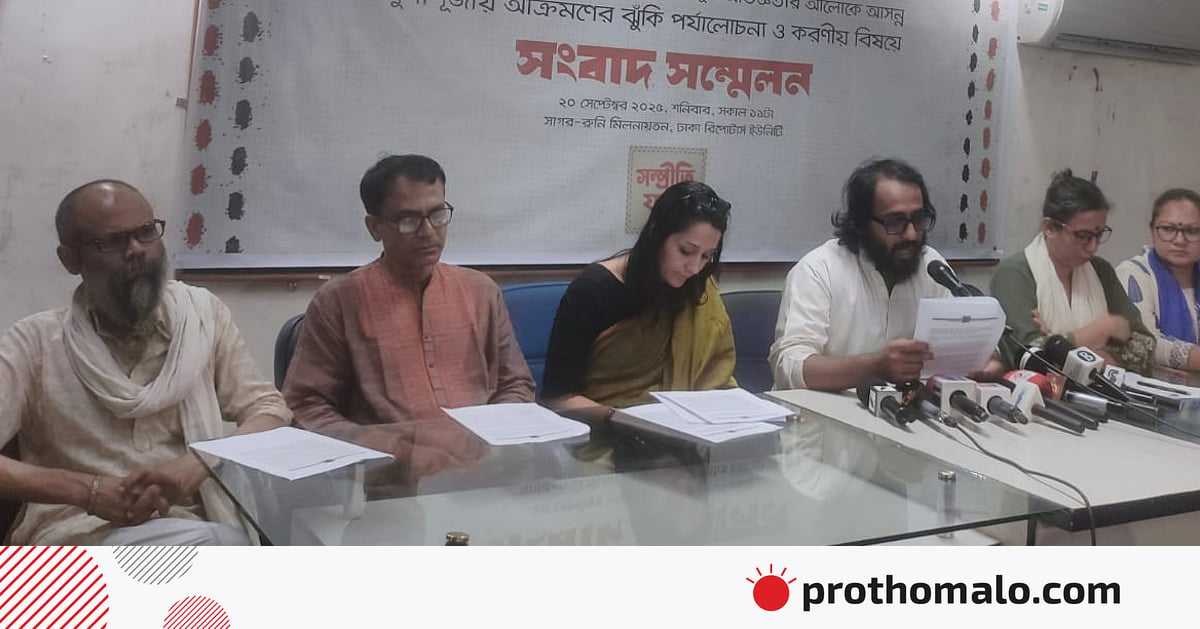 সাংস্কৃতিক কর্মী বিথী ঘোষের সঞ্চালনায় সংবাদ সম্মেলনে লিখিত বক্তব্য পাঠ করেন লেখক ও গবেষক মীর হুযাইফা। তিনি বলেন, কারও বিরুদ্ধে অভিযোগ উঠলে দেশের আইনশৃঙ্খলা রক্ষাকারী বাহিনীর সেটি দেখার কথা। কিন্তু নানা অভিযোগে দীর্ঘ দুই দশকেরও বেশি সময় ধরে দেশে সম্প্রীতি বিনষ্টের অপতৎপরতা চলছে। সময়ের সঙ্গে সঙ্গে তার পরিসর আরও বিস্তৃত হয়েছে। বৈষম্যহীনতার আকাঙ্ক্ষা নিয়ে ২০২৪ সালের গণ-আন্দোলনের পরও এ প্রবণতার কোনো ইতিবাচক পরিবর্তন ঘটেনি।