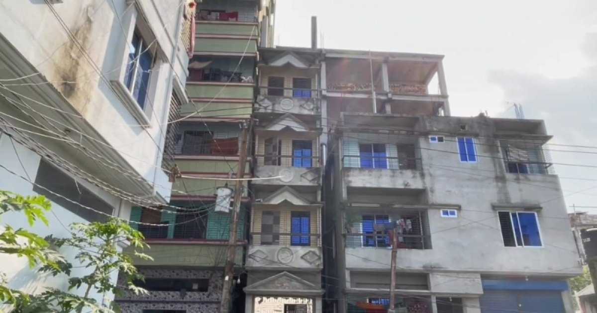 ভবনটিতে ঢুকে দেখা গেছে, করিডরের তৃতীয় তলার অংশটি পাশের ছয়তলা ভবনের ওপর হেলে রয়েছে। তিন তলার বারান্দার রেলিংয়ের ইটের গাঁথুনির অংশটি ফেটে গেছে। তবে করিডরের আর কোথাও কোনও ক্ষতিগ্রস্ত হয়নি। যদিও করিডর দিয়ে ঢুকে চারতলা ভবনের ভেতরেও কোনও ক্ষয়ক্ষতির চিত্র দেখা যায়নি।