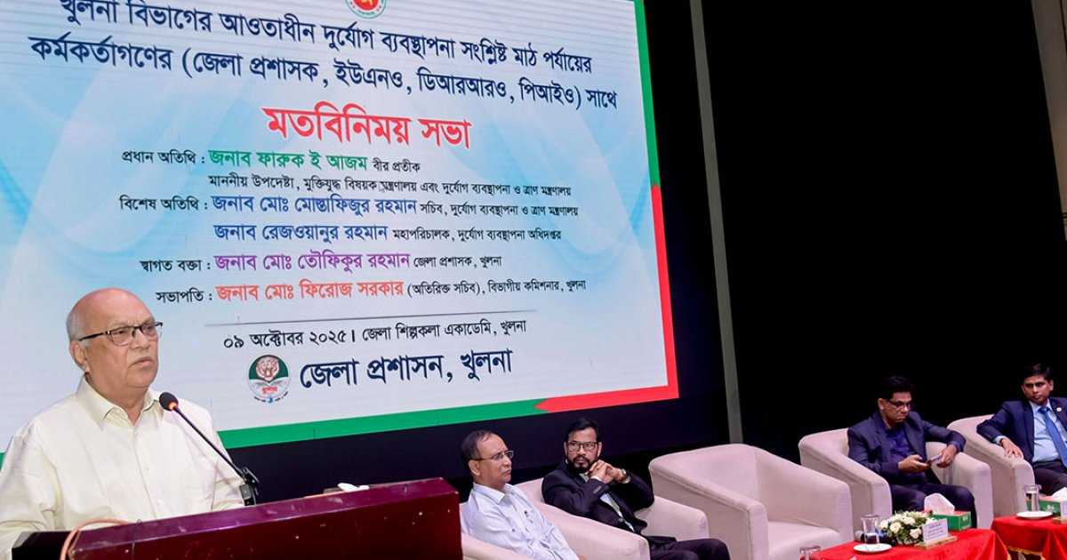 তিনি বৃহস্পতিবার (৯ অক্টোবর) রাতে খুলনা জেলা শিল্পকলা একাডেমি অডিটোরিয়ামে বিভাগের আওতাধীন দুর্যোগ ব্যবস্থাপনা-সংশ্লিষ্ট মাঠপর্যায়ের কর্মকর্তাগণের সঙ্গে মতবিনিময় সভায় প্রধান অতিথির বক্তৃতায় এসব কথা বলেন।