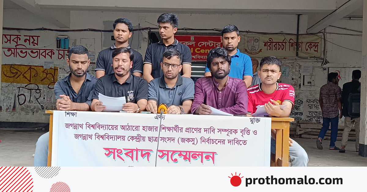 আজ সোমবার দুপুরে জগন্নাথ বিশ্ববিদ্যালয়ের ভাষাশহীদ রফিক ভবনের নিচে আয়োজিত এক সংবাদ সম্মেলনে এসব দাবি জানানো হয়।