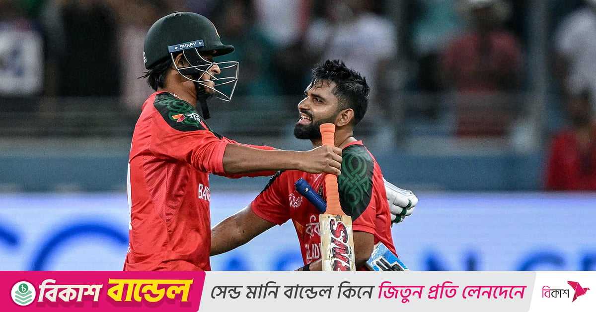 তাঁর বিদায়ের পর ব্যাটন তুলে নেন হৃদয়। কামিন্দু মেন্ডিসের করা পরের ওভারে ২ চার ও ১ ছক্কায় তুলে নেন ১৬ রান। ম্যাচটা তখন বাংলাদেশের একেবারে হাতের মুঠোয়।শেষ দিকে ১ রান বাকি থাকতে ৩ বলে বাংলাদেশ হারায় ২ উইকেট। কিন্তু তাতে শ্রীলঙ্কার আফসোসই বাড়ে। নাসুম আহমেদ জয়সূচক রানটা নিতেই অন্য প্রান্তে লাফিয়ে ওঠেন শামীম হোসেন। আনন্দে ভাসে বাংলাদেশের ডাগআউট, যেন পুরো দুবাইও।