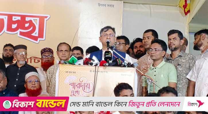 স্থায়ী কমিটির এই সদস্য বলেন, সনাতন ধর্মাবলম্বীদের সর্ববৃহৎ ধর্মীয় অনুষ্ঠান দুর্গাপূজা কেবল একটি উৎসব নয়, এটি অশুভ শক্তি ও অসুরের বিরুদ্ধে সংগ্রামের প্রতীক। দীর্ঘ ১৬ বছর ধরে বাংলাদেশে মানুষ ফ্যাসিবাদ ও অসুর শক্তির বিরুদ্ধে লড়াই করেছে। সেই লড়াইয়ে ফ্যাসিবাদের পতন ঘটেছে, তবে অশুভ শক্তি এখনো পুরোপুরি বিনাশ হয়নি।
