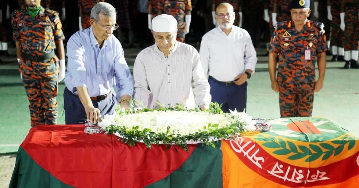 জানাজার আগে মরহুমের কফিনে ফুল দিয়ে শ্রদ্ধা নিবেদন করেন স্বরাষ্ট্র উপদেষ্টা। এ সময় অগ্নিসেনাদের একটি চৌকস দল তাকে ‘গার্ড অব অনার’ প্রদান করে। ফায়ার সার্ভিস ও সিভিল ডিফেন্সের পক্ষ থেকে প্রয়াত ফায়ারফাইটারের সংক্ষিপ্ত জীবনবৃত্তান্ত পাঠ করা হয় এবং তার বড় ভাই সংক্ষিপ্ত বক্তব্য দেন। তিনি পরিবারের পক্ষ থেকে মরহুমের জন্য দোয়া ও ক্ষমা প্রার্থনা করেন।
