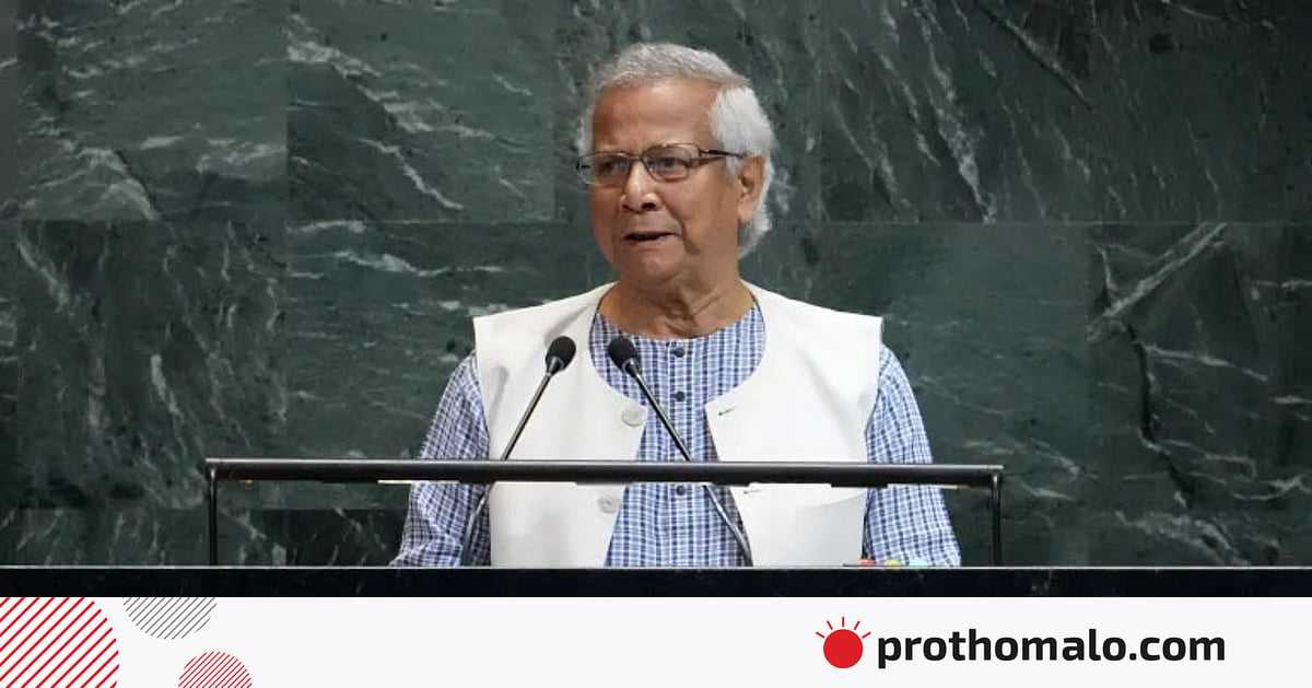 বৈশ্বিক এই ফোরামে দাঁড়িয়ে প্রধান উপদেষ্টা বলেন, ‘গত বছর এই মহান সভায় আমি দাঁড়িয়েছিলাম সদ্য গণ-অভ্যুত্থান সংঘটিত একটি দেশের রূপান্তরের আকাঙ্ক্ষা আপনাদের শোনানোর জন্য। আজ আমি এই রূপান্তরের অগ্রযাত্রায় কতটুকু অগ্রসর হতে পেরেছি তা বলব।’
