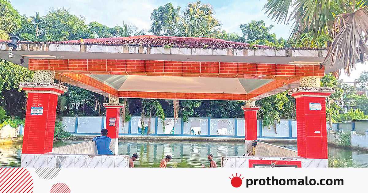 ফেনী শহরের মাস্টারপাড়ার লমি হাজারী বাড়ির সামনে ছোট্ট একটি পুকুর। শানবাঁধানো ঘাট। আছে ছাউনি। স্থানীয় কয়েকজন সেখানে গোসল করছিলেন। পাশের মাঠে একজন ঝালমুড়ি বিক্রি করছিলেন। আরেকজন বিক্রি করছেন পেয়ারা ও জাম্বুরামাখা। এখানে এমন দৃশ্য ২০২৪ সালের ৫ আগস্টের আগে ছিল কল্পনাতীত।