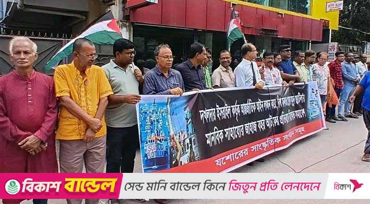 যশোর: ফিলিস্তিনের গাজাবাসীর জন্য ত্রাণ নিয়ে যাওয়া ‘গ্লোবাল সুমুদ ফ্লোটিলা’র জাহাজ বহর ইসরায়েলি বাহিনী কর্তৃক আটকের প্রতিবাদে যশোরে বিক্ষোভ করেছে সাংস্কৃতিক সংগঠনগুলো।