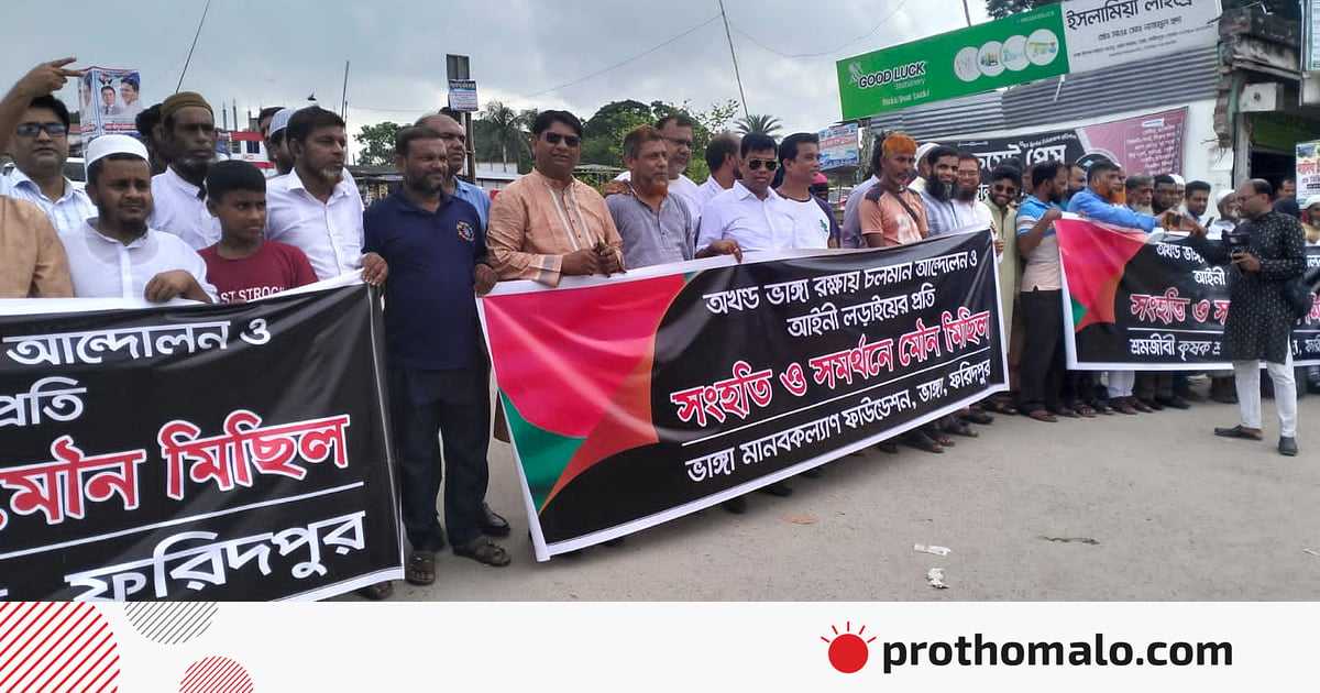সংসদীয় আসন পুনর্গঠনে ফরিদপুরের ভাঙ্গা উপজেলার দুটি ইউনিয়ন ফরিদপুর-৪ আসন (ভাঙ্গা, সদরপুর ও চরভদ্রাসন) থেকে কেটে ফরিদপুর–২ (নগরকান্দা-সালথা) আসনে নিয়ে যাওয়ার প্রতিবাদে আজ শনিবার ভাঙ্গায় মানববন্ধন ও মিছিল হয়েছে। শ্রমজীবী কৃষক শ্রমিক সংঘ, ভাঙ্গা মানবকল্যাণ ফাউন্ডেশন ও অঙ্গীকার-৯২ নামক তিনটি স্বেচ্ছাসেবী সংগঠন এই কর্মসূচির আয়োজন করে।