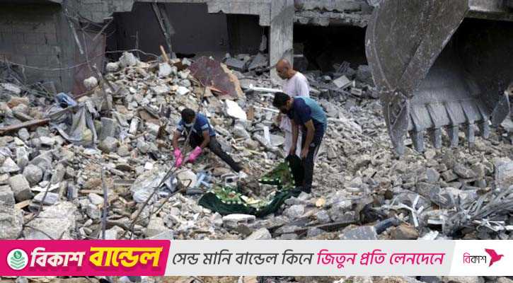 ইসরায়েলি বিমান হামলায় গাজা শহরে ধ্বংসস্তূপে পরিণত হওয়া ভবনগুলোর নিচ থেকে একের পর এক লাশ উদ্ধার করছেন ফিলিস্তিনিরা। রোববার (৫ অক্টোবর) সকাল থেকে ফিলিস্তিনিরা হাত ও কোদাল দিয়ে ধ্বংসস্তূপ খুঁড়ে লাশগুলো বের করে আনা হচ্ছে।