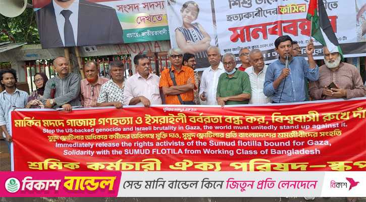 ঢাকা: গাজায় ইসরায়েলের চলমান আগ্রাসন এবং ত্রাণবাহী জাহাজ 'সুমুদ ফ্লোটিলা'র মানবাধিকার কর্মীদের গ্রেপ্তারের ঘটনায় তীব্র নিন্দা ও প্রতিবাদ জানিয়েছে দেশের বিভিন্ন শ্রমিক সংগঠন।