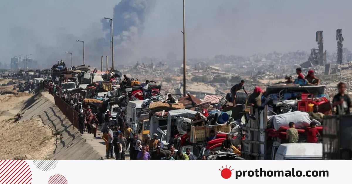 গত মাসে জাতিসংঘ সতর্ক করে দিয়ে বলেছিল, গাজা নগরীতে স্থল অভিযানের যে পরিকল্পনা ইসরায়েল করছে, তাতে সেখানে বসবাস করা ১০ লাখ ফিলিস্তিনি বাস্তুচ্যুত হওয়ার ঝুঁকি রয়েছে।