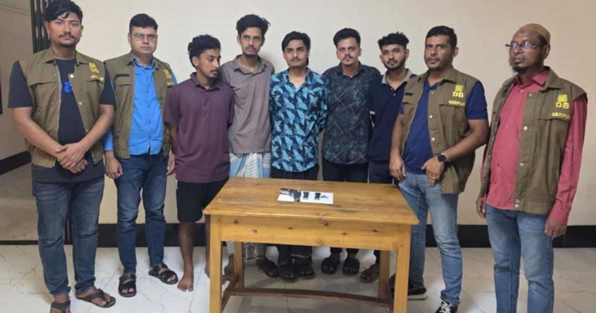 গ্রেফতারকৃতরা হলেন- শ্রীপুর উপজেলার তেলিহাটি ইউনিয়নের টেপিরবাড়ী এলাকার ইমরান হোসেন (২২), জয়দেবপুর থানার ভবানীপুর এলাকার আশিকুল ইসলাম (১৯), গাজীপুর মহানগর সদর থানার দক্ষিণপাড়া এলাকার মেহেদী হাসান ইমন (২৩), তেলিহাটি ইউনিয়নের মুলাইদ গ্রামের শাহরিয়ার রহমান সাদাফ (২২) এবং কিশোরগঞ্জের হোসেনপুর উপজেলার নতুন বাজার এলাকার মোজাম্মেল হাসান রোমান (২২)।
