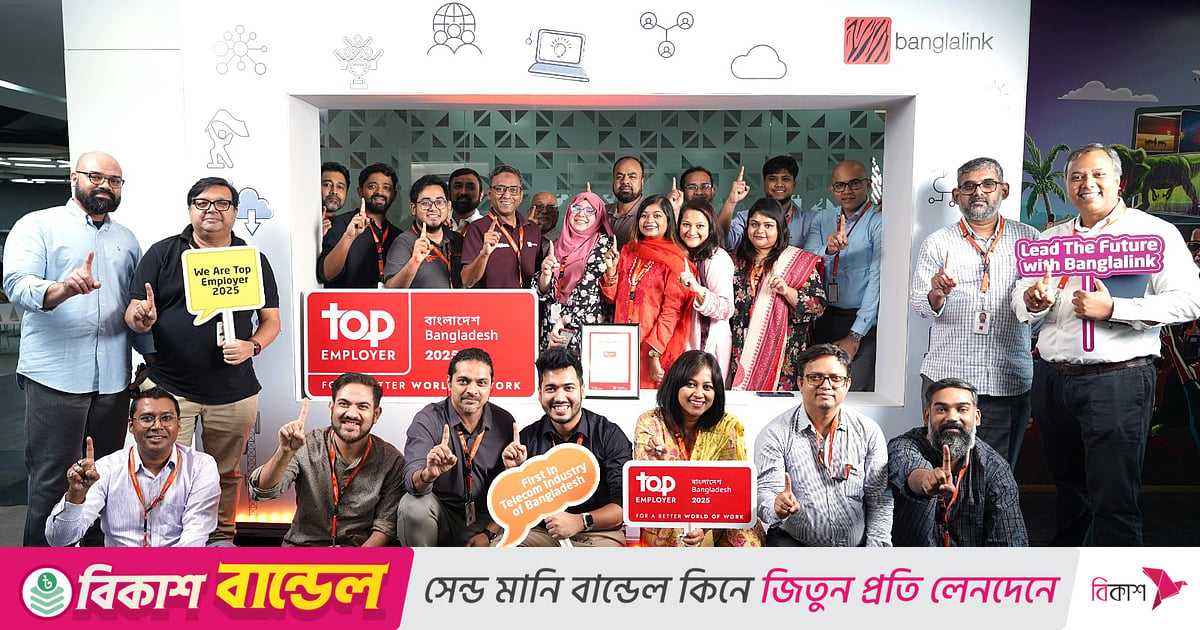 দেশের প্রথম টেলিকম অপারেটর হিসেবে ‘গ্লোবাল টপ এমপ্লয়ার ২০২৫’ সার্টিফিকেশন পেয়েছে বাংলালিংক। আন্তর্জাতিক সংস্থা ‘টপ এমপ্লয়ার্স ইনস্টিটিউট’–এর দেওয়া এই স্বীকৃতির ক্ষেত্রে কর্মীসংক্রান্ত কৌশল (পিপল স্ট্র্যাটেজি), কর্মপরিবেশ, নিয়োগপ্রক্রিয়া, প্রশিক্ষণ ও উন্নয়ন, বৈচিত্র্য ও অন্তর্ভুক্তি এবং কর্মীদের কল্যাণ ও সুযোগ–সুবিধা মূল্যায়ন করা হয়েছে। আজ রোববার এক সংবাদ বিজ্ঞপ্তিতে এ তথ্য জানিয়েছে বাংলালিংক।