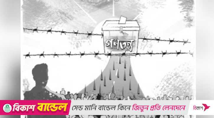কিন্তু সেটা যে সত্য নয়, তা তো আমরা আমাদের দেশে নিজেদের অভিজ্ঞতার ভেতর দিয়েই জেনেছি। এখানে নির্বাচন হয় এবং জোর করে ক্ষমতা দখলও চলে। তবে জবরদখল স্থায়ী হয় না। নির্বাচন আসে এবং মনে করা হয় যে গণতন্ত্রকে প্রাতিষ্ঠানিক রূপ দেওয়া হয়েছে। কিন্তু পরিণামে যা পাওয়া যায়, তা মোটেই গণতন্ত্র নয়, সেটা হচ্ছে নির্বাচিত স্বৈরাচার। আর সাধারণ অভিজ্ঞতা এটাই যে স্বৈরাচার যদি নির্বাচিত হয়, অর্থাৎ নিজেকে বৈধ করে নেয়, তবে তা অবৈধ স্বৈরাচারের চেয়েও ভয়ংকর হতে পারে। কেননা বৈধ স্বৈরাচার নিজেকে বৈধ মনে করে, ভাবে সে জনগণের রায় নিয়ে এসেছে। তাই যা ইচ্ছা তা করতে পারবে, যতটা সম্ভব আইন চালাবে, পাঁচ বছর পরে দেখা যাবে জনগণ তাদের কাজ পছন্দ করেছে কি করেনি। বলা বাহুল্য, এ রকম শাসনকে গণতন্ত্র বলে না। গণতন্ত্রের জন্য জবাবদিহি ও স্বচ্ছতা আবশ্যক। কিন্তু তা-ও যথেষ্ট নয়, জবাবদিহি কার কাছে, স্বচ্ছতাই বা কতটা? আর ভোট? ভোটের তো কেনাবেচা চলে। আরো বড় সমস্যা যেটা, সেটা হলো নাগরিকদের সামনে এলেই কোনো পছন্দ থাকে না; তারা যেকোনো একটিকে বেছে নেয়। জনগণ কার হাতে অত্যাচারিত হবে, এর নাকি ওর—ভোটের মধ্য দিয়ে এর বাইরে কোনো কিছুর মীমাংসা ঘটে না। এমন ব্যবস্থাকে গণতন্ত্র বলার কোনো মানেই হয় না।