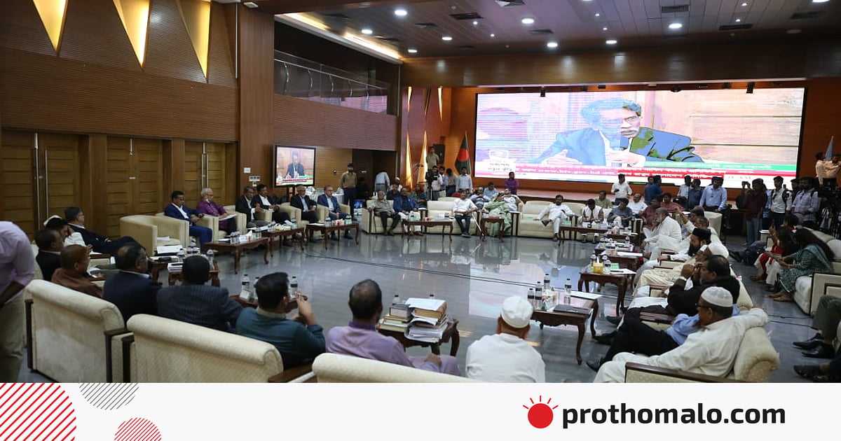 রাজধানীর ফরেন সার্ভিস একাডেমিতে ২৮টি দলের সঙ্গে বেলা সাড়ে ১১টার দিকে আলোচনা শুরু হয়। এক ঘণ্টার মধ্যাহ্নবিরতি দিয়ে আলোচনা চলে বিকেল পাঁচটা পর্যন্ত।
