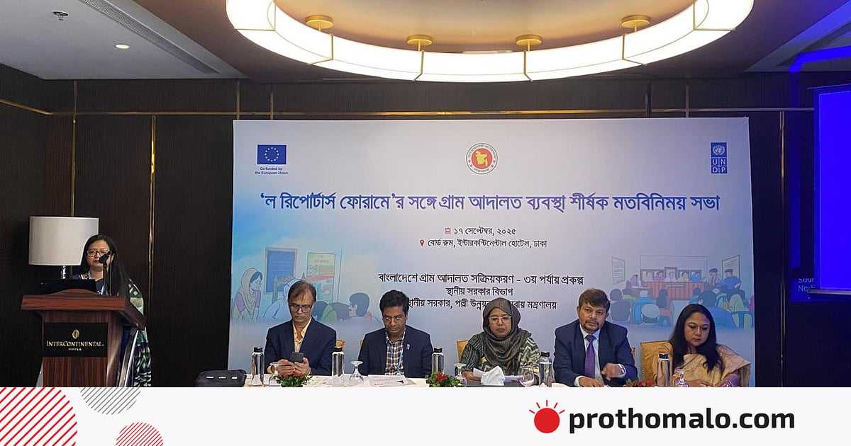 ল রিপোর্টার্স ফোরামের সঙ্গে গ্রাম আদালত ব্যবস্থা শীর্ষক মতবিনিময় সভায় আজ বুধবার বক্তারা এ কথাগুলো বলেন। স্থানীয় সরকার বিভাগের অধীন বাংলাদেশে গ্রাম আদালত সক্রিয়করণ–৩য় পর্যায় প্রকল্প, ইউরোপীয় ইউনিয়ন (ইইউ) এবং জাতিসংঘ উন্নয়ন কর্মসূচি (ইউএনডিপি) রাজধানীর ইন্টারকন্টিনেন্টাল হোটেলে এই মতবিনিময় সভার আয়োজন করে।