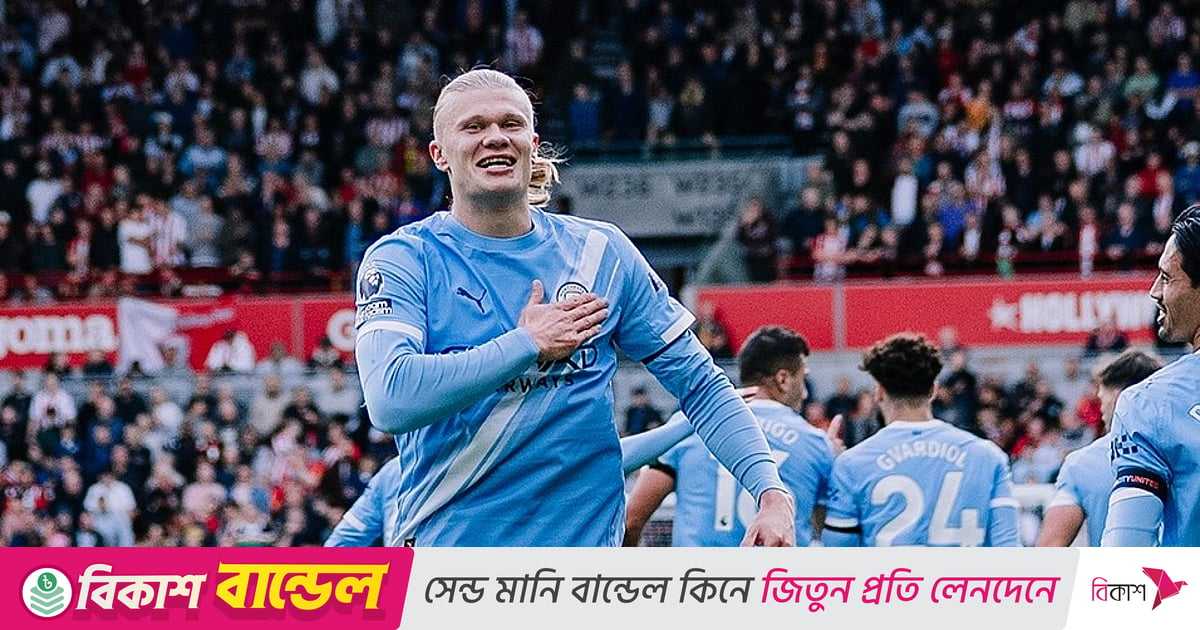 এই ম্যাচের আগে পর্যন্ত প্রিমিয়ার লিগে হলান্ড শুধু দুটি মাঠে গোল করতে পারেননি, অ্যানফিল্ড ও ব্রেন্টফোর্ডের জিটেক স্টেডিয়াম। তবে আজ মাঠে নামার নবম মিনিটেই জিটেক স্টেডিয়ামে গোল না পাওয়ার আক্ষেপ ঘুচিয়ে ফেললেন নরওয়েজিয়ান স্ট্রাইকার।