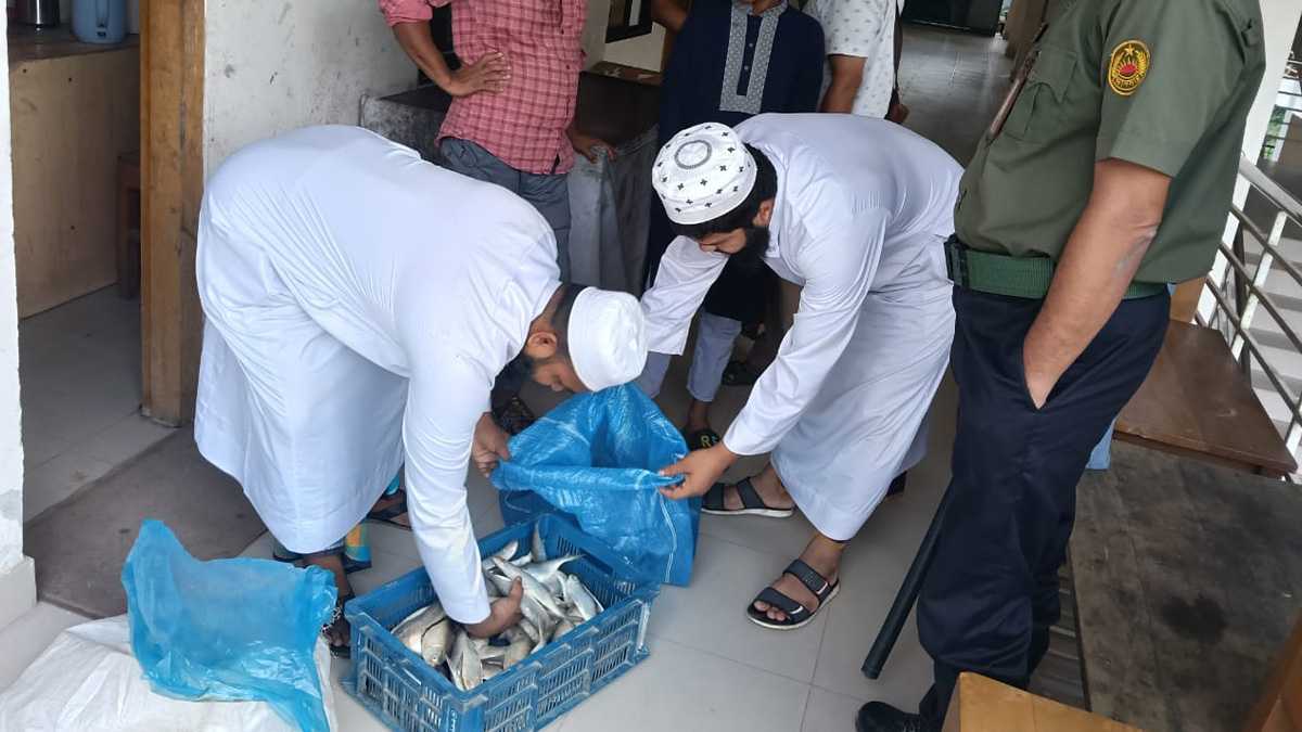 এই নিষেধাজ্ঞা অমান্য করে কিছু অসাধু জেলে প্রশাসনের চোখ ফাঁকি দিয়ে জাজিরার পদ্মা নদীতে মাছ শিকার করে তা নদীর পাড়ে বিক্রি করে আসছিল।