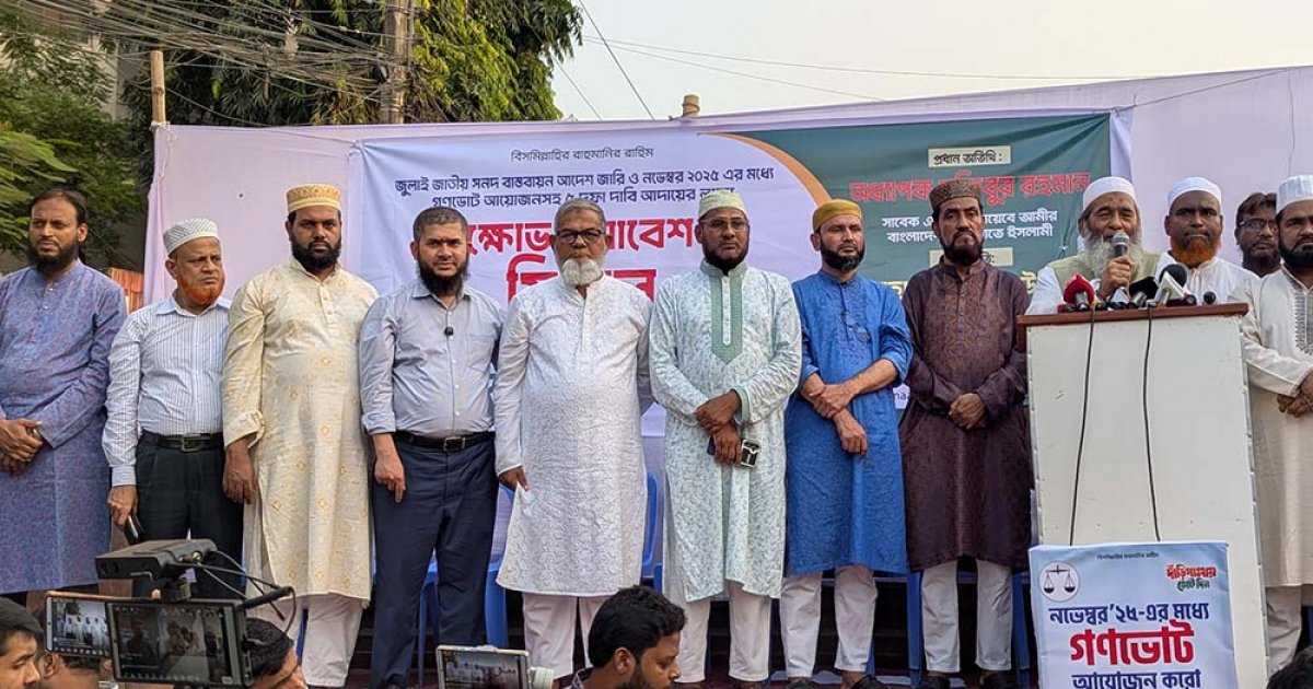 বিকাল সোড়ে ৪টায় রাজধানীর মহাখালির কলেরা হাসপাতালের সামনে বাংলাদেশ জামায়াতে ইসলামী ঢাকা মহানগরী উত্তর আয়োজিত জুলাই জাতীয় সনদ বাস্তবায়ন আদেশ জারি ও নভেম্বর ২০২৫-এর মধ্যে গণভোট আয়োজনসহ ৫ দফা দাবি আদায়ের লক্ষ্যে দাবিতে গণমিছিল পূর্ব বিশাল সমাবেশে প্রধান অতিথির বক্তব্যে এসব কথা বলেন।