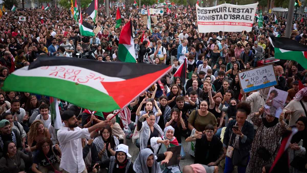 এসময় তাদের সঙ্গে পুলিশের ব্যাপক সংঘর্ষ হয়। এক পর্যায়ে বিক্ষোভকারীদের ওপর টিয়ার শেল ছোড়ে পুলিশ। একই দিনে গ্লোবাল সুমুদ ফ্লোটিলাকে ইসরায়েলি কর্তৃপক্ষ বাধা দেয়ায় বার্সেলোনার শিক্ষার্থীরাও বিক্ষোভে রাস্তায় নামে।