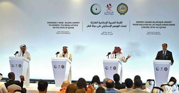 দোহার এক জরুরি শীর্ষ সম্মেলনে আরব ও ইসলামি দেশগুলোর নেতারা কাতারে হামাস নেতাদের লক্ষ্য করে ইসরায়েলের চালানো বিমান হামলাকে কাপুরুষোচিত ও বিশ্বাসঘাতকতা হিসেবে অভিহিত করেছেন। তবে সমালোচনার বাইরে কোনো দেশই তাৎক্ষণিক কোনো জবাব দেওয়ার ঘোষণা দেয়নি।
