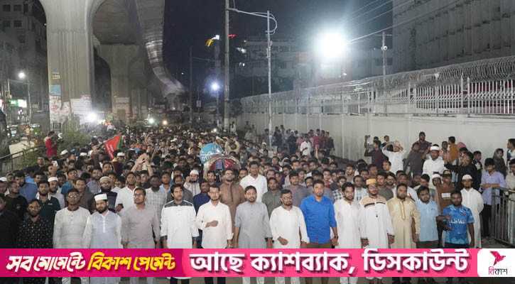 শুক্রবার (১২ সেপ্টেম্বর) সন্ধ্যা সাড়ে ৭টায় ঢাকা মহানগর পূর্ব শাখার উদ্যোগে বায়তুল মোকাররম উত্তর গেট থেকে বিক্ষোভ মিছিলটি শুরু হয়।