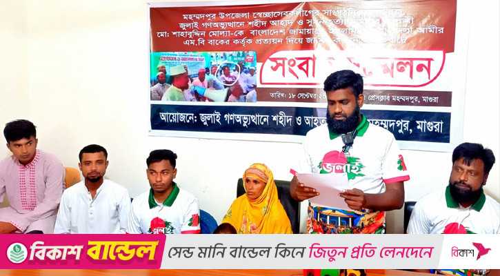লিখিত বক্তব্যে নিহত ও আহত পরিবারের সদস্যরা অভিযোগ করেন, শাহাবুদ্দিনের জামিনে সহযোগিতা করার জন্য ‘তিনি জামায়াতে ইসলামের কর্মী’ দাবি করে মাগুরা জেলা জামায়াতের আমির এমবি বাকের তাকে প্রত্যয়নপত্র দিয়েছেন।