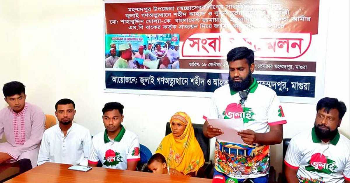 বৃহস্পতিবার বেলা ১১টায় মহম্মদপুর প্রেসক্লাবে জুলাই যোদ্ধা ও শহীদ পরিবারের সদস্যরা এই সংবাদ সম্মেলন করেন।