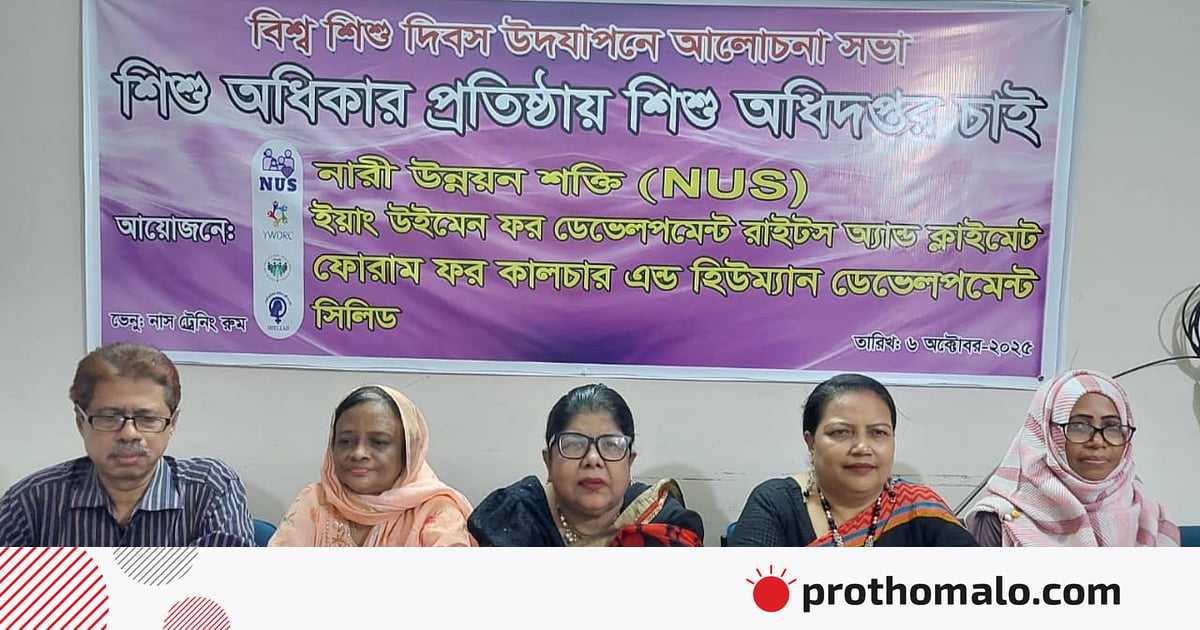 বিশ্ব শিশু দিবস ও শিশু অধিকার সপ্তাহ উপলক্ষে আয়োজিত আলোচনা সভায় এ কথা বলেন বক্তারা। আজ সোমবার রাজধানীর রামপুরায় বেসরকারি সংগঠন নারী উন্নয়ন শক্তির কার্যালয়ে আলোচনা সভাটি অনুষ্ঠিত হয়।