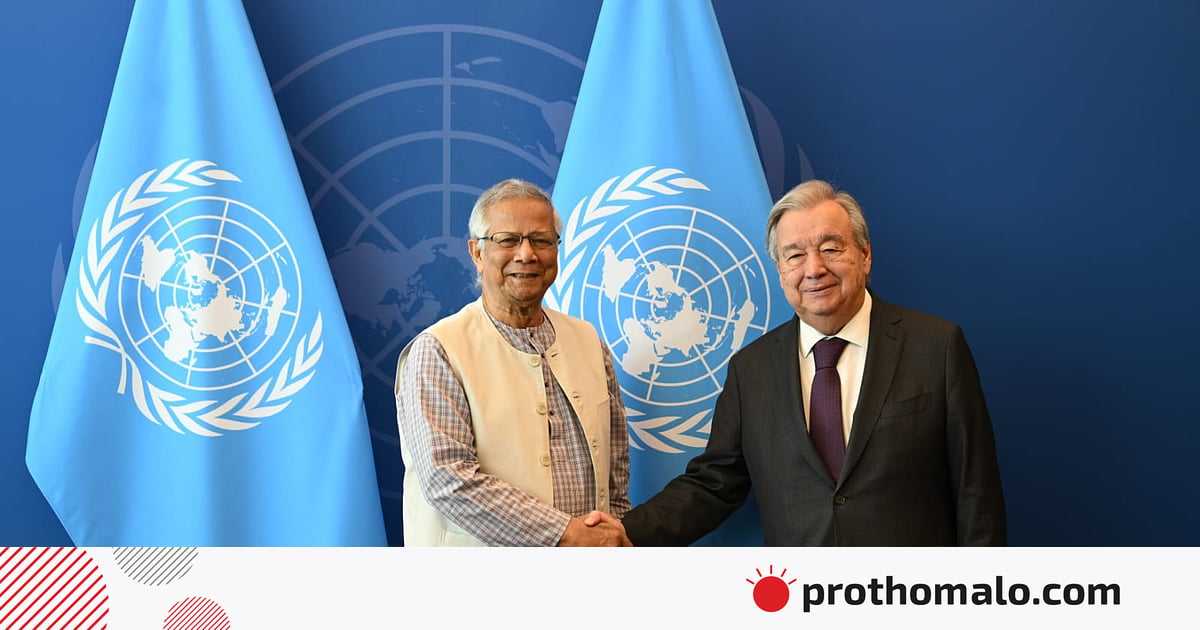 জাতিসংঘের মহাসচিব আন্তোনিও গুতেরেসের সঙ্গে সাক্ষাৎ করেছেন অন্তর্বর্তী সরকারের প্রধান উপদেষ্টা অধ্যাপক মুহাম্মদ ইউনূস। সোমবার যুক্তরাষ্ট্রের নিউইয়র্কে জাতিসংঘের সদর দপ্তরে দুজনের সাক্ষাৎ হয়।