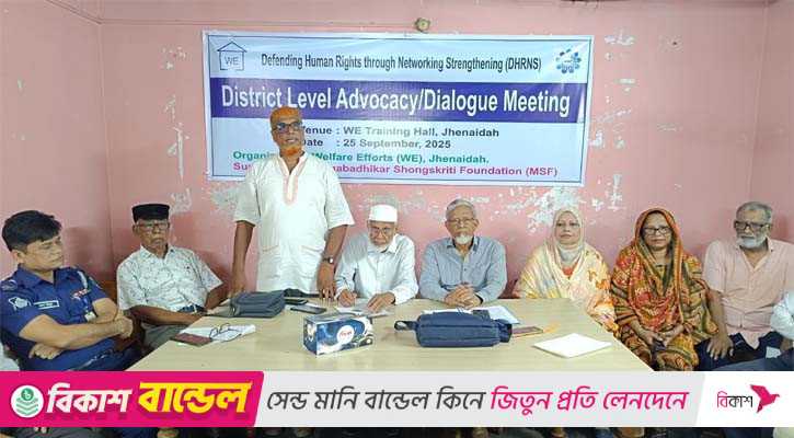 ঝিনাইদহ: মানবাধিকার পরিস্থিতি পর্যালোচনা বিষয়ক আলোচনা সভা বৃহস্পতিবার (২৫ সেপ্টেম্বর) দুপুরে ঝিনাইদহ শহরের ওয়েলফেয়ার এফোর্টস (উই) কার্যালয়ে অনুষ্ঠিত হয়েছে।