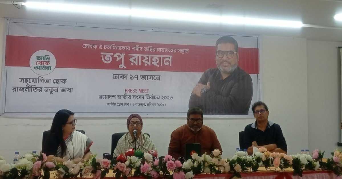 রবিবার জাতীয় (৯ নভেম্বর) দুপুরে জাতীয় প্রেসক্লাবের আব্দুস সালাম মিলনায়তনে ঢাকা-১৭ আসনে জহির রায়হান ও সুচন্দা দম্পতির ছোট ছেলে তপু রায়হানের প্রার্থিতা ঘোষণা অনুষ্ঠানে এসব কথা বলেন তিনি।