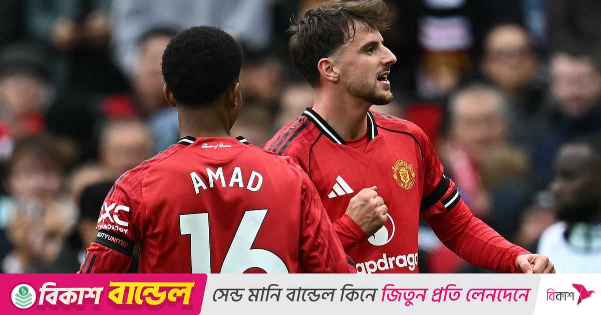 ওল্ড ট্রাফোর্ডের ম্যাচটিতে ইউনাইটেডের তিন পয়েন্ট এনে দেওয়া জয়ে গোল করেছেন ম্যাসন মাউন্ট ও বেনিয়ামিন সেসকো। এ নিয়ে লিগে ঘরের মাঠে টানা তিন ম্যাচ জিতল ইউনাইটেড। ২০২৩ সালের আগস্টের পর গত দুই বছরে যা আর দেখা যায়নি।