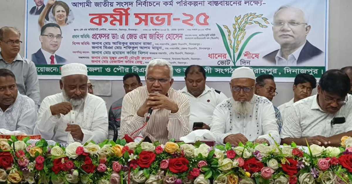 আগামী সংসদ নির্বাচনে কর্মপরিকল্পনা বাস্তবায়নের লক্ষ্যে বুধবার (১৫ অক্টোবর) দুপুরে দিনাজপুরের বিরামপুরে দলের নেতাকর্মীদের নিয়ে এক কর্মীসভায় তিনি এ কথা বলেন। এ সময় সেখানে দলের বিভিন্ন পর্যায়ের নেতাকর্মীরা উপস্থিত ছিলেন।