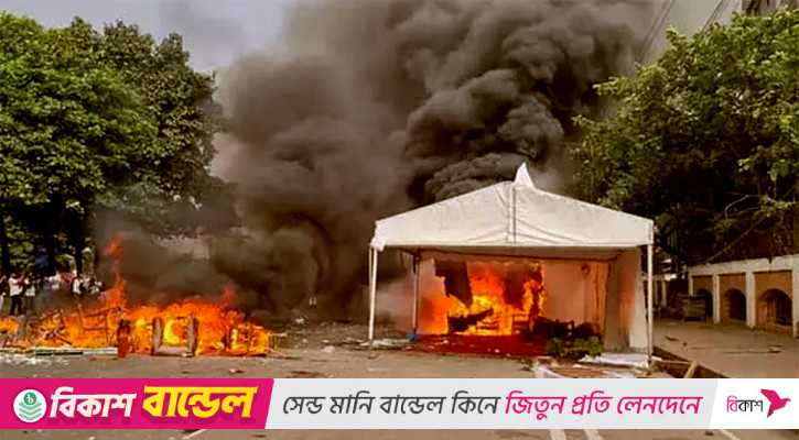 এসময় আন্দোলনকারীরা পুলিশকে লক্ষ্য করে বোতল ও চেয়ার নিক্ষেপ করে। পুলিশ পাল্টা সাউন্ড গ্রেনেড ও টিয়ার সেল নিক্ষেপ করে তাদের ছত্রভঙ্গ করার চেষ্টা চালায়। অন্যদিকে আন্দোলনকারীরা সড়কে আগুন ধরিয়ে ইটপাটকেল নিক্ষেপ করে বিক্ষোভ চালিয়ে যায়।