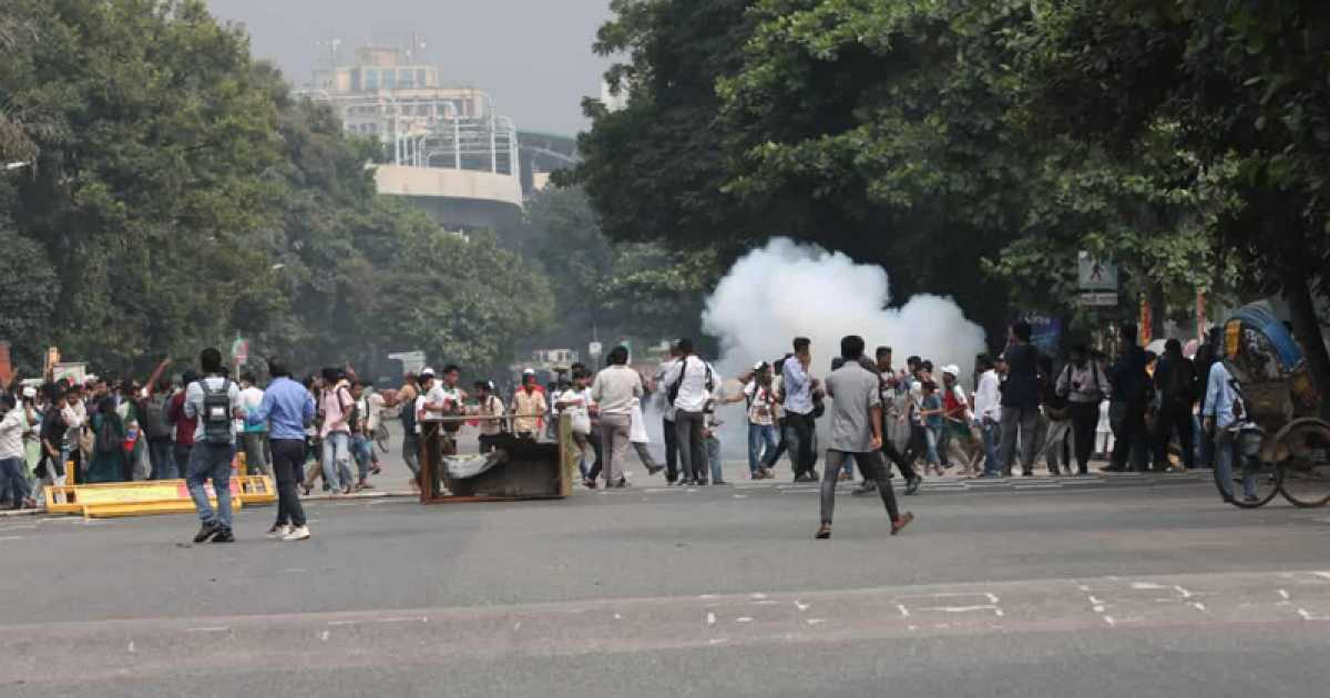 এ সময় উত্তেজিত ‘জুলাই যোদ্ধা’রা পুলিশের দিকে ইট-পাটকেল নিক্ষেপ করলে পুলিশ পরিস্থিতি নিয়ন্ত্রণে আনতে একাধিক সাউন্ড গ্রেনেড ও টিয়ারশেল নিক্ষেপ করে। এতে পুলিশের পাশাপাশি ‘জুলাই যোদ্ধা’ ও কয়েকজন সাংবাদিক আহত হয়েছেন বলে জানা গেছে।