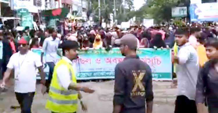 শিক্ষার্থীরা শিমুলতলী সড়কের ডুয়েট গেটের পাশে এমআইএসটি পলিটেকনিক ইনস্টিটিট সামনে জড়ো হন। তারা বিক্ষোভ মিছিল নিয়ে ভুরুলিয়া রেল গেইট, শিববাড়ি হয়ে চন্দনা চৌরাস্তায় এলাকায় জড়ো হয়ে বিক্ষোভ করতে থাকে।