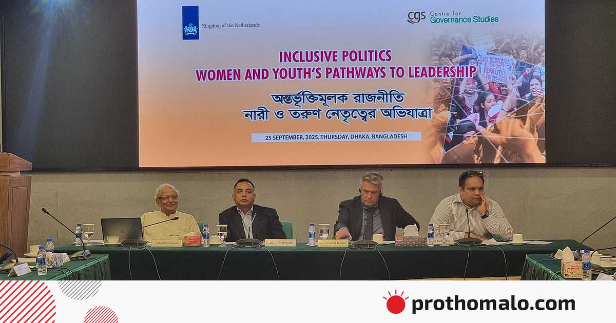 আজ বৃহস্পতিবার রাজধানীতে বাংলাদেশ ইনস্টিটিউট অব ইন্টারন্যাশনাল অ্যান্ড স্ট্র্যাটেজিক স্টাডিজ (বিআইআইএসএস) অডিটরিয়ামে ‘অন্তর্ভুক্তিমূলক রাজনীতি: নারী ও তরুণ নেতৃত্বের অভিযাত্রা’ শীর্ষক গোলটেবিল সংলাপে বক্তারা এসব কথা। নেদারল্যান্ডস দূতাবাসের সহযোগিতায় সেন্টার ফর গভর্ন্যান্স স্টাডিজ (সিজিএস) এ আয়োজন করে।