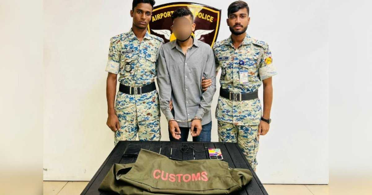 রবিবার রাতে সাড়ে ৯টায় বিমানবন্দরের ৮ নম্বর হ্যাঙ্গার গেটের পূর্ব পাশে কাস্টমস হাউস সংলগ্ন এলাকা থেকে তাকে আটক করা হয়।