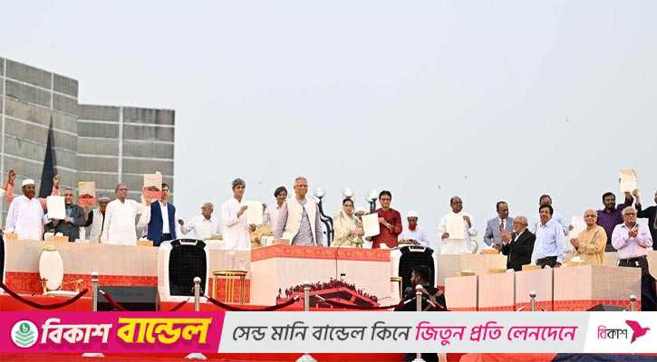 গণতান্ত্রিক মূল্যবোধ এবং জাতীয় ঐকমত্যের ভিত্তিতে ২০২৪ সালের জুলাই গণঅভ্যুত্থানে প্রকাশিত জনগণের ইচ্ছাকে প্রাধান্য দিয়ে আমরা নিম্নস্বাক্ষরকারীগণ এই মর্মে অঙ্গীকার ও ঘোষণা করছি যে-